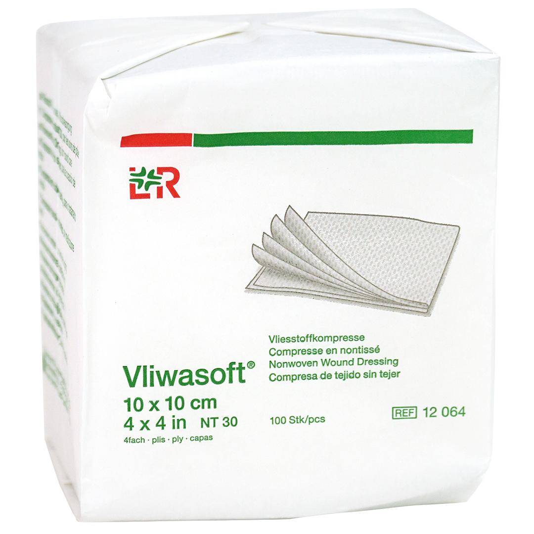 Vliwasoft gaaskompres, 10cm x 10cm, 4 laags, onsteriel (100)